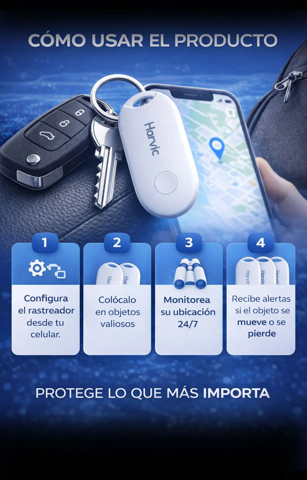 El rastreador GPS se conecta a tu dispositivo iOS y te permite conocer la ubicación en tiempo real de tus objetos desde el celular. Solo debes vincularlo una vez y colocarlo en llaves, mochila, auto u objeto de valor.